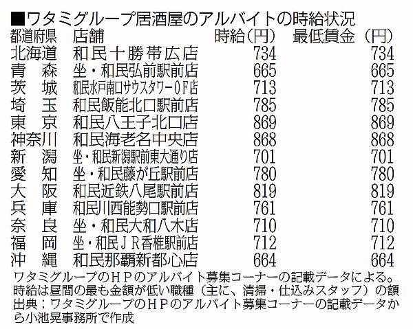 ワタミグループの居酒屋で、各都道府県の最低賃金と同額の時給でアルバイトが募集されていることが、4日の参院予算委員会の小池晃副委員長の質問で明らかになりました(表)。