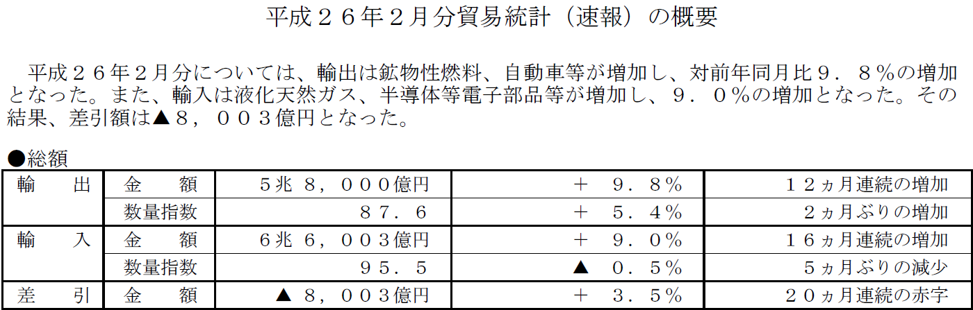 まあ、貿易赤字なんて日経平均みたいなもんだから黒なら嬉しいぐらいの認識でいいんじゃない?