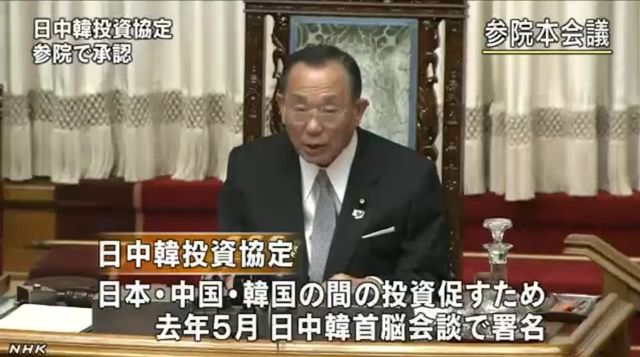 日本・中国・韓国の3ヶ国で日中韓投資協定を制定。