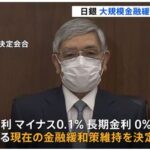 1: 2022/03/18(金) 18:42:47.54 ID:CAP_USER日本銀行は金融政策決定会合を開き、現在の大規模な金融緩和策を維持することを決めました。日銀は、きょうまでの会合で短期金利をマイナス0.1%…