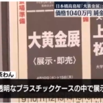 1: 2024/04/11(木) 14:37:41.42 ID:dmq9823f9警視庁によりますと、11日正午ごろ、東京・中央区の日本橋高島屋で開催されている展示即売会「大黄金展」の会場から、販売価格およそ1040万円相当の…