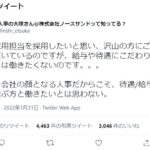 1: 2022/02/02(水) 16:59:38.62 ID:l8UDIc/39@nshr_otsuka 新卒採用担当を採用したいと思い、沢山の方にご応募いただいているのですが、給与や待遇にこだわりのある人とは働きたくな…