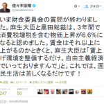 1: キャプチュード(栃木県) 2014/02/21(金) 22:53:45佐々木憲昭 @sasakikensho いま財金委員会の質問が終わりました。 麻生大臣と黒田総裁は、3年間で消費税増税を含む物価上昇が6.6%になると認めました。 …