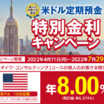 1: 2022/05/03(火) 21:35:54.79 ID:wFgVkKQR0 BE:454228327-2BP(2000)「米ドル定期預金 特別金利キャンペーン 年8.00%(税引後、年6.374%)」…