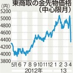 1: やるっきゃ騎士φ ★ 2013/04/17(水) 08:29:52.45 ID:???国際価格の高止まりと円安で上昇基調にあった国内の金価格に“異変”が起きている。 現物の需要が大きい中国の経済減速懸念などから世界的に商品相場が急落し…