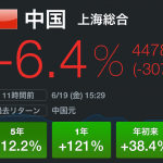 1: FX2ちゃんねる 2015/06/19(金) 22:14:27.84 ID:???*.net中国バブル崩壊か 上海株が6%超の大幅続落、1週間では13%超の暴落 ブルームバーグ社の調べによると、19日の上海総合指数は前日終値比で306…