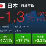 1: 2017/08/09(水) 17:23:59.38 ID:CAP_USER9.net日経平均の終値は1万9738円71銭(257円30銭安)、TOPIXは1617.90ポイント(17.42ポイント安)、出来高概算(東証1…